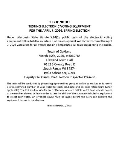 Welcome to the official website for the Town of Oakland in Douglas County. We are located approximately 11 miles south of Superior, Wisconsin, at 6152 S County Road K, South Range, WI 54874.